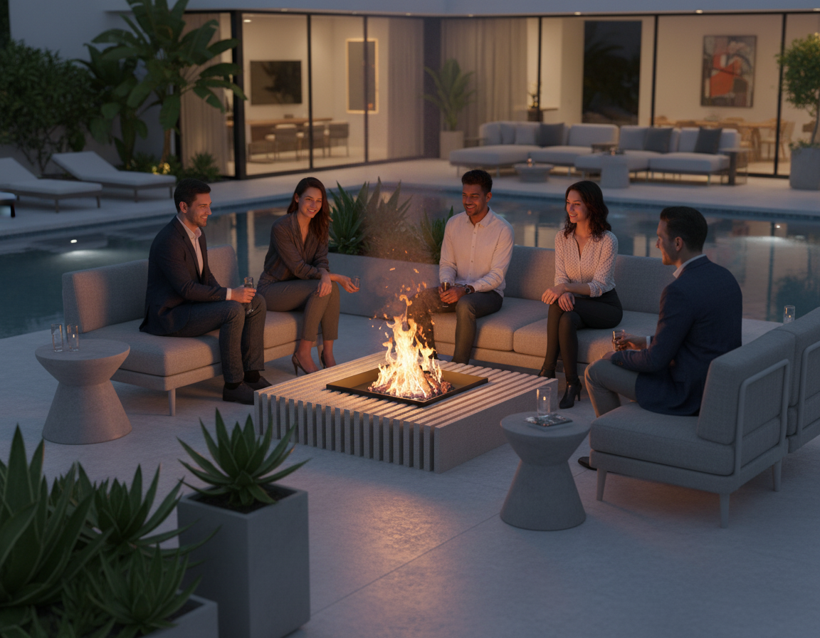 Introducing our elegant and smooth modern outdoor firepit – the perfect centerpiece for any patio or backyard.